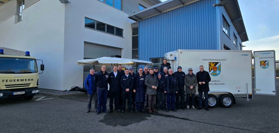 „Egal ob bei einem länger andauernden Feuerwehreinsatz in unserem Landkreis oder beim traditionellen Kreisempfang, wir können uns immer auf unseren Verpflegungstrupp verlassen. Dafür danke ich allen Beteiligten herzlich“, so Landrat Dietmar Seefeldt bei der Übergabe, bei der auch Landtagsabgeordneter und Herxheims Ortsbürgermeister Sven Koch, Christian Sommer, Bürgermeister der Verbandsgemeinde Herxheim, der stellvertretende SÜW-Brand- und Katastrophenschutzinspekteur Michael Trautmann, Wehrleiter Jürgen Fink, Wehrführer Florian Müller sowie Mitglieder des Verpflegungstrupps zugegen waren.