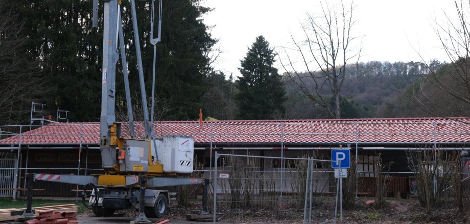 Im Verwaltungsgebäude des Wild- und Wanderparks sind der Kassenbereich, die Toiletten, ein kleines Büro und ein Sozialraum für das Park-Team untergebracht. Vor dem Eingang stehend, ist es das Gebäude linker Hand. Auf dessen Dach wird der Landkreis SÜW seine erste größere, eigene PV-Anlage installieren.