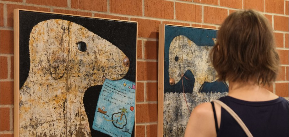 „Matthias Göhr schafft es, mit seinen Bildern auf Papier und Leinwand die Sehnsucht nach verwunschenen Welten zu wecken und stellt dar, wie Mensch, Tier und Glück miteinander verbunden sind – nicht immer erkennbar auf den ersten Blick, aber bei genauerem Hinschauen“, so Landrat Dietmar Seefeldt bei seiner Begrüßung zur Vernissage. Er betonte, wie wichtig Kunst und Kultur und somit auch die Kunstausstellungen im Kreishaus für den Landkreis seien.