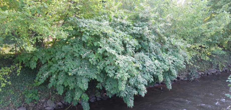 Zunächst hatte die Untere Wasserbehörde in Albersweiler im Bereich der Laibach bei den Kleingartenanlagen ein kleines Probefeld von 100 mal 2,50 Meter bearbeiten lassen. Der Staudenknöterich wurde auf beiden Uferseiten der Queich dort viele Male gerodet. Schnell kamen in wenigen Wochen Aufwendungen im vierstelligen Bereich zusammen, allein die Entsorgung der enormen Menge an Biomasse, die in den Restmüll muss, kostete 800 Euro.