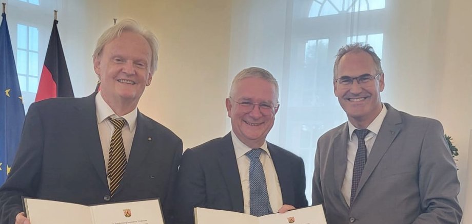 „Nur wenigen Persönlichkeiten wird die Ehre zuteil, einen berufsbezogenen Ehrentitel tragen zu dürfen. Dieser Titel macht die besondere gesellschaftliche Anerkennung deutlich, die sich die Träger verdient haben. Ökonomierat Hansjörg Rebholz und Sanitätsrat Dr. Volker Thorn engagierten sich für ihren Berufsstand außerordentlich und haben sich ihren Ehrentitel mehr als verdient“, betont Landrat Seefeldt.
