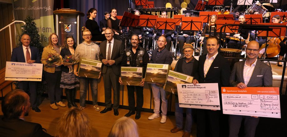 Die Sparkasse Südpfalz, die VR-Bank Südpfalz und die VR-Bank Südliche Weinstraße-Wasgau spendeten jeweils 2000 Euro, sodass jede der sechs geehrten Organisationen mit 1000 Euro bedacht wird.