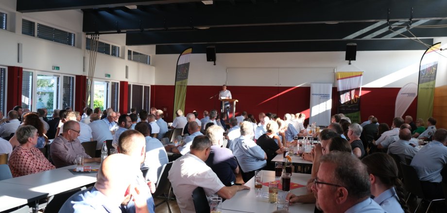 Landrat Dietmar Seefeldt erinnerte in seiner Ansprache daran, dass der rheinland-pfälzische Landtag Mitte Juni ein neues Landesbrand- und Katastrophenschutzgesetz beschlossen hat. „Der Katastrophenschutz wird damit von der Pflichtaufgabe der Selbstverwaltung zur Auftragsverwaltung. In Verbindung mit der ebenfalls für diesen Sommer angekündigten Katastrophenschutzverordnung kommen zahlreiche Pflichten und Aufgaben auf die Landkreise, aber auch auf die Gemeinden zu“, so Seefeldt. „Die Umsetzung der neuen Rechtslage wird die kommunale Familie in fachlicher und finanzieller Hinsicht vor große Herausforderungen stellen, die nur gemeinsam bewältigt werden können.“ So erinnerte er auch daran, dass im Frühjahr ein neuer interkommunaler Vertrag zur Zusammenarbeit im medizinischen Katastrophenschutz mit der Stadt Landau, dem DRK Südliche Weinstraße, der DLRG Landau und dem DRK Landau geschlossen worden war. „Dieser Vertrag bildet das Kernstück der zukünftigen interkommunalen Zusammenarbeit im Brand- und Katastrophenschutz.“ Ebenfalls ging der Landrat auf die zahlreichen Fahrzeugbeschaffungen ein, die der Kreis SÜW derzeit im Bereich des Katastrophenschutzes vornehme. „Bereits vergeben wurde der Auftrag für drei Löschfahrzeuge an die Firma Schmitz. Die Lieferzeit beträgt ‚nur‘ 18 Monate, was bei durchschnittlichen Lieferzeiten für Feuerwehrfahrzeuge von 36 bis 48 Monaten kurz ist“, so der Landrat. Er berichtete weiter, dass auch der Auftrag für Logistikfahrzeug für die Schnelleinsatzgruppe Verpflegung (SEG-V), ein sogenanntes Mehrzweckfahrzeug Typ 2, dieses Jahr vergeben worden sei. „Noch drei Krankentransportwagen und einen Rettungswagen werden wir 2025 ausschreiben, außerdem haben wir einen weiteren Rettungswagen als Gebrauchtfahrzeug vom Werksrettungsdienst der BASF gekauft, der 2026 noch weiter umgerüstet wird.“ Doch diese Fahrzeuge benötigten auch Garagen, so Seefeldt, und im Einsatzfall müsse für jedes Fahrzeug auch ausreichend ausgebildetes und trainiertes Personal vorhanden sein.