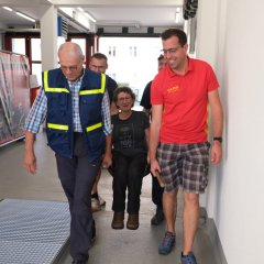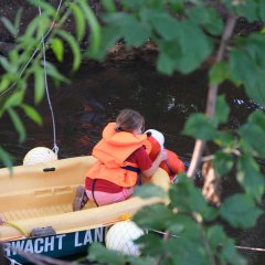 Bei der Station der Wasserwacht des DRK SÜW soll spielerisch der Umgang mit der Gefahr von Strömungen im Wasser vermittelt werden. Gemeinsam mit der Strömungsrettung geht es für die teilnehmenden Gruppen um die Menschenrettung aus dem Wasser.