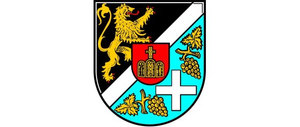Durch einen silbernen Schräglinksbalken, überdeckt von einem roten Herzschild, darin eine goldene Kaiserkrone, von Schwarz und Blau geteilt, oben ein linksgewendeter, rotbewehrter und -bezungter goldener Löwe, unten ein schwebendes gleichschenkliges silbernes Kreuz, beseitet von je einer goldbestielten goldenen Weintraube mit Blatt.